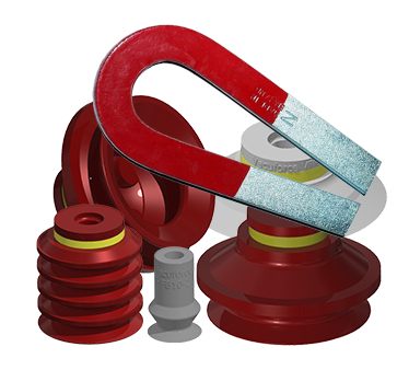 Iron filings inside the actual silicone compound allow metal detectors to sense that a vacuum cup has fallen into the food packaging that contains food stuffs like bread loaves, rolls, and buns or confectionery foodstuffs.